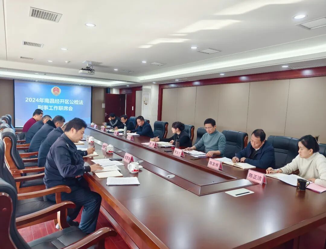 为进一步加强公检法在刑事案件办理过程中的沟通衔接,增强对多发案件的打击合力,共同提升刑事案件办理质效,2024年12月20日,南昌经开区检察院邀请区公安分局、区法院共同召开公检法刑事工作联席会,区公安分局、区检察院、区法院分管领导、相关业务部门负责人及业务骨干参加会议。