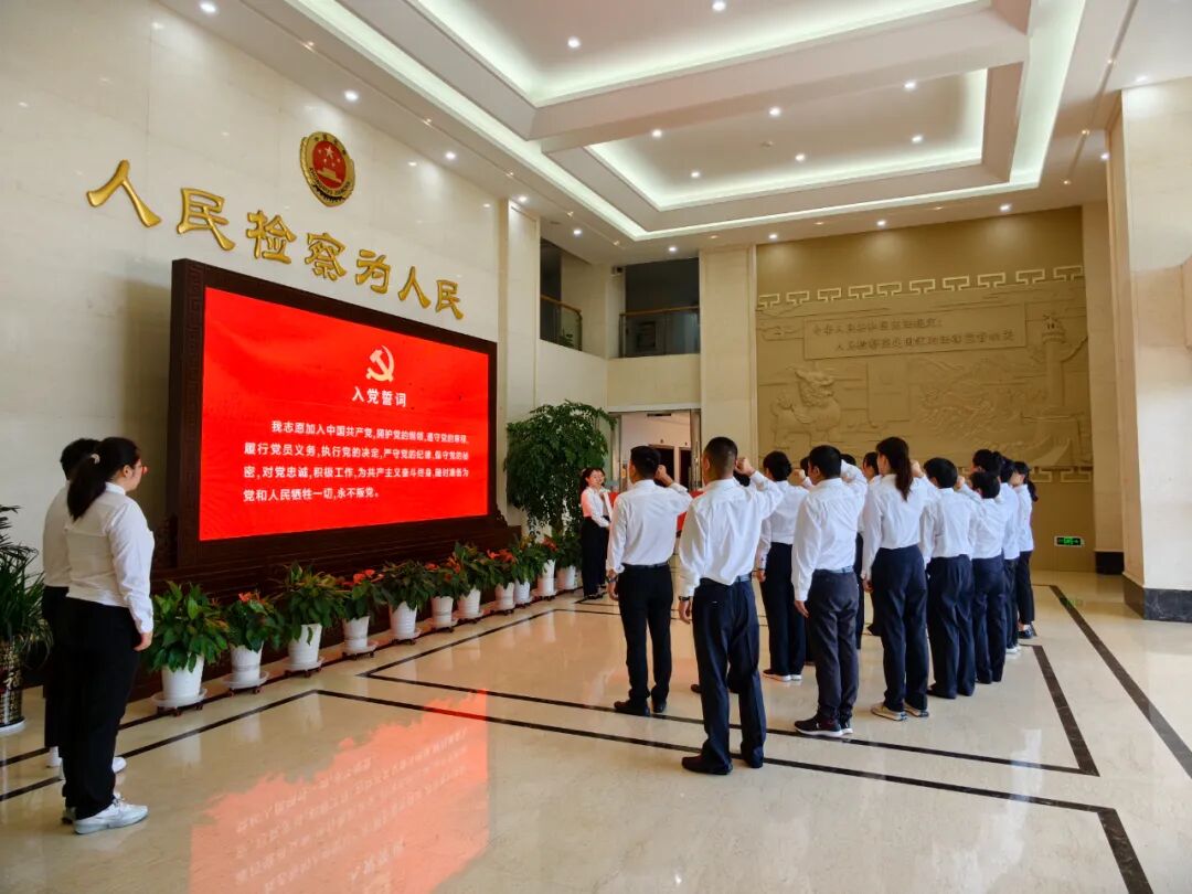 “我志愿加入中国共产党,拥护党的纲领,遵守党的章程……” 在庄严肃穆的大厅内,院分党组副书记、副检察长、党支部书记罗建珍同志带领着全体党员干警,面对鲜红党旗,整齐列队、神情庄重,以铿锵有力的誓言,重温对党忠诚的承诺,入党积极分子在旁观摩学习。誓言声声,传递着党员们对党的赤诚忠心,更彰显着牢记使命、接续奋斗的决心,让初心在回溯信仰中历久弥坚。