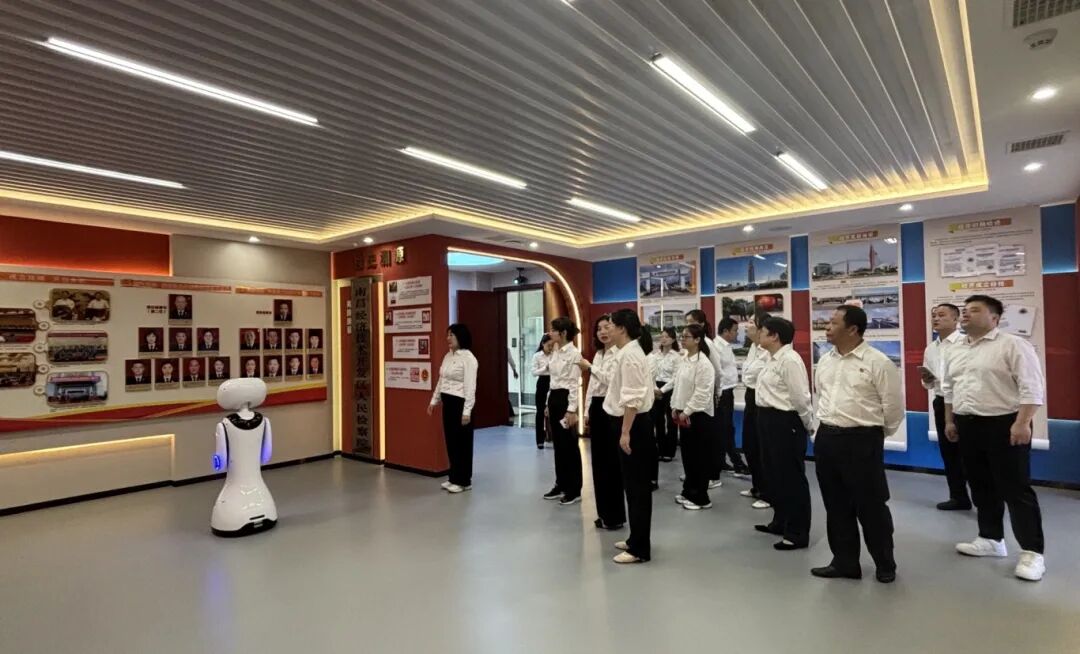 随后,党员干警走进新打造好的院史室。跟随着机器人讲解,透过珍贵的历史资料、老照片,回溯单位发展历程,了解检察工作的传承与创新。从过往的奋斗足迹中,感悟前辈们坚守法治、担当作为的精神,汲取奋进新时代的动力,激励着大家在检察工作中续写新篇。