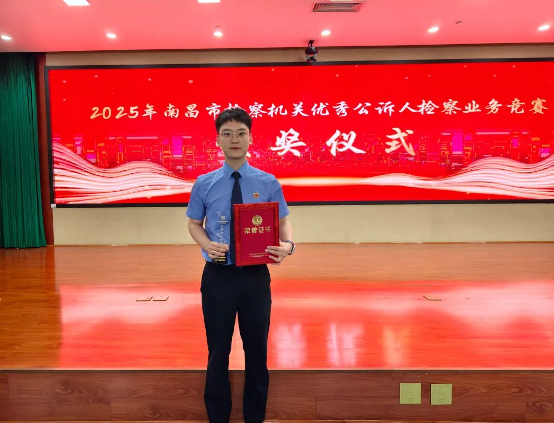 在刚刚结束的2025年南昌市检察机关优秀公诉人业务竞赛中,我院第一检察部项雄同志表现突出,荣获"南昌市公诉标兵"荣誉称号。