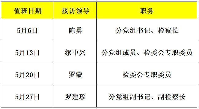 2025年5月检察长接访安排