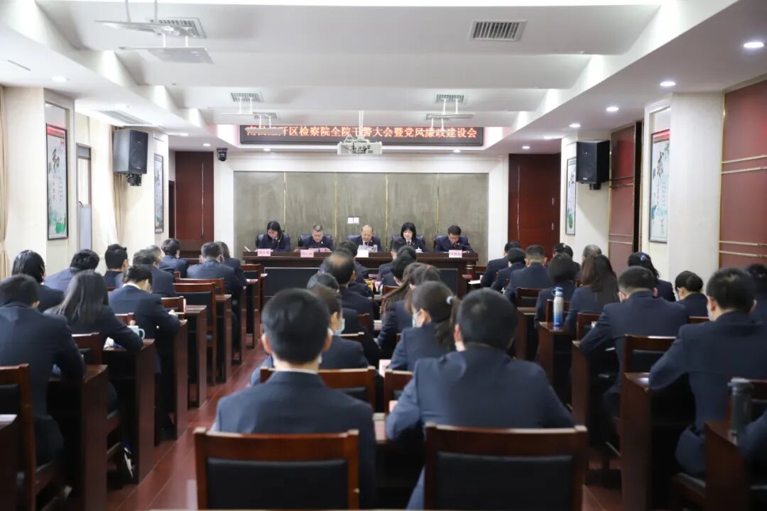 为进一步严明纪律规矩,激发全院干警干事创业精气神,3月15日,我院召开全院干警大会暨党风廉政建设会,再次传达全省、全市检察长会议精神,对2022年工作进行总结,并对2023年工作进行全面部署,党组书记、检察长陈勇出席会议并讲话,会议由党组副书记、副检察长罗建珍主持,院领导、?全院干警参加。